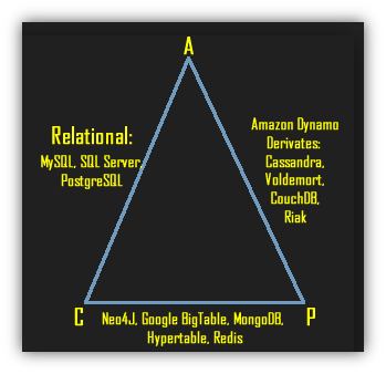 If a network failure occurs and half the servers cannot see the other half what should happen? It turns out in a NoSQL world you never sacrifice partition tolerance which is another way of saying, all NoSQL systems must handle this type of failure. So the question is “do NoSQL systems go AP or CP”? AC would be for RDBMS’s only.