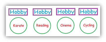 Here we have another 4 nodes that are the same shape and colour but we know represent different things. So in our two examples above what they all have in common is that the first 4 are People and the second 4 are hobbies.
