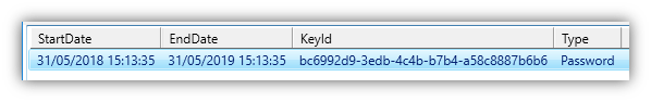 Get-AzureRmADServicePrincipalCredential -ObjectId $sp.Id
