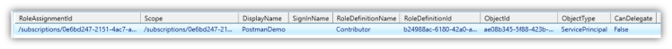 $sp = Get-AzureRmADServicePrincipal -DisplayName PostmanDemo