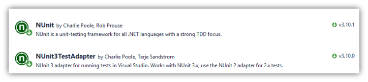 The following Nuget packages were added to the NUnit project.