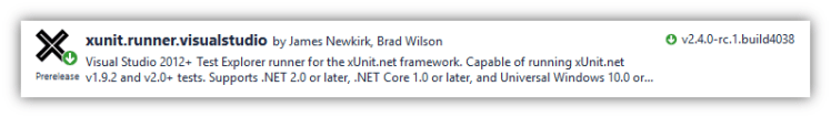 The xunit package will also bring in a number of other dependencies.