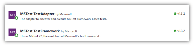 The following Nuget packages were added to the MSTest project. Note: You can use the Unit Testing project template which will automatically bring in the Nuget packages however; make sure you do a Nuget update because the template includes older versions.